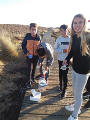 | Na ilha já existem uns pequenos contentores feitos de latas reutilizadas para reciclar as beatas - um dos maiores poluentes do planeta. Esta ideia já existe, no entanto no caminho até à praia não existe nenhum destes mini contentores, o que faz com que os transeuntes deitem as suas beatas para o chão. E foi isso mesmo que os alunos do 6ºF comprovaram, numa caminhada de 30 minutos recolheram pontas de cigarros e encheram 1 garrafa de beatas. |